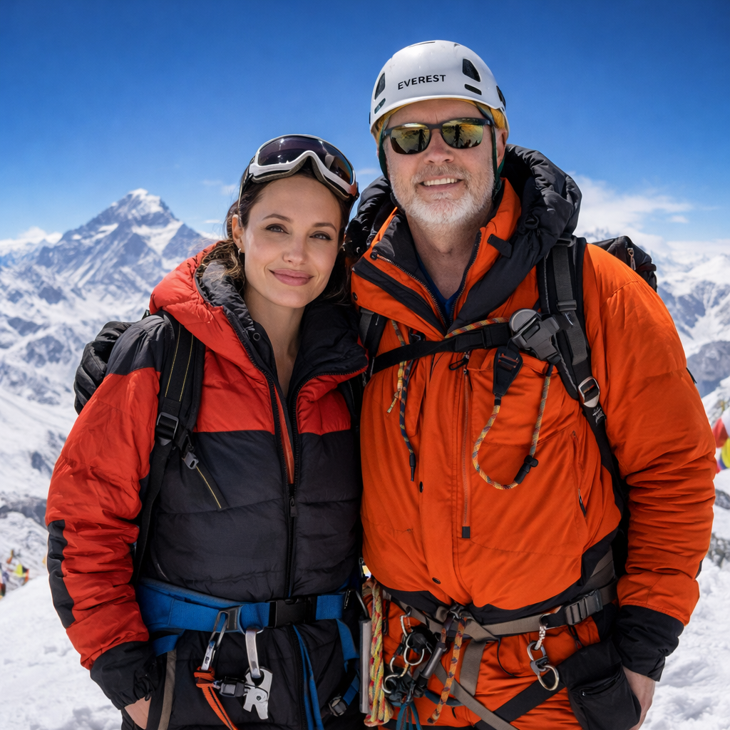 Fake me and fake Angelina at the top of fake Mount Everest…
